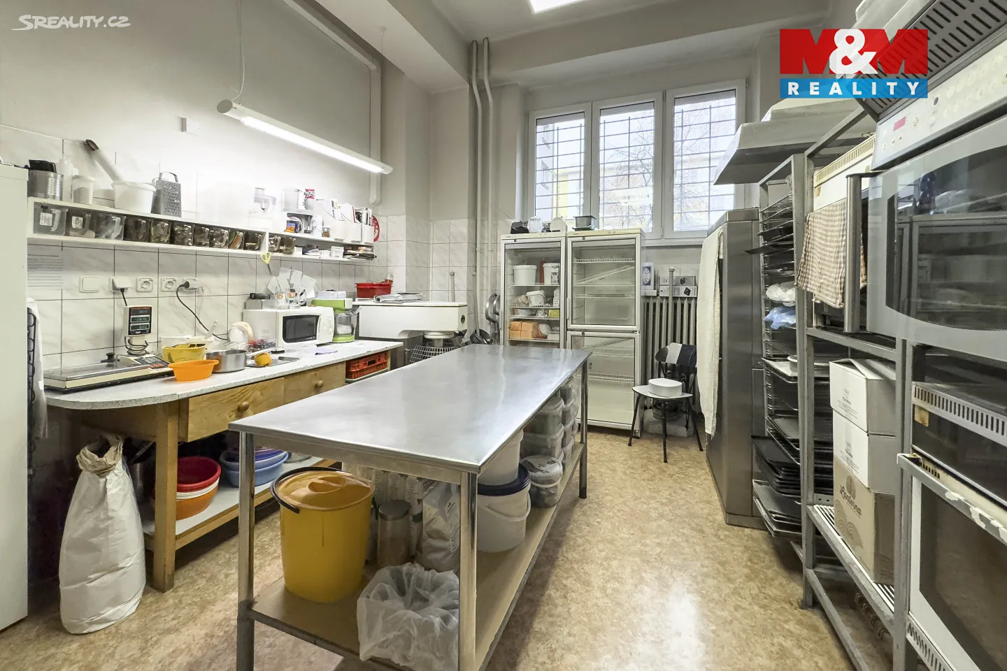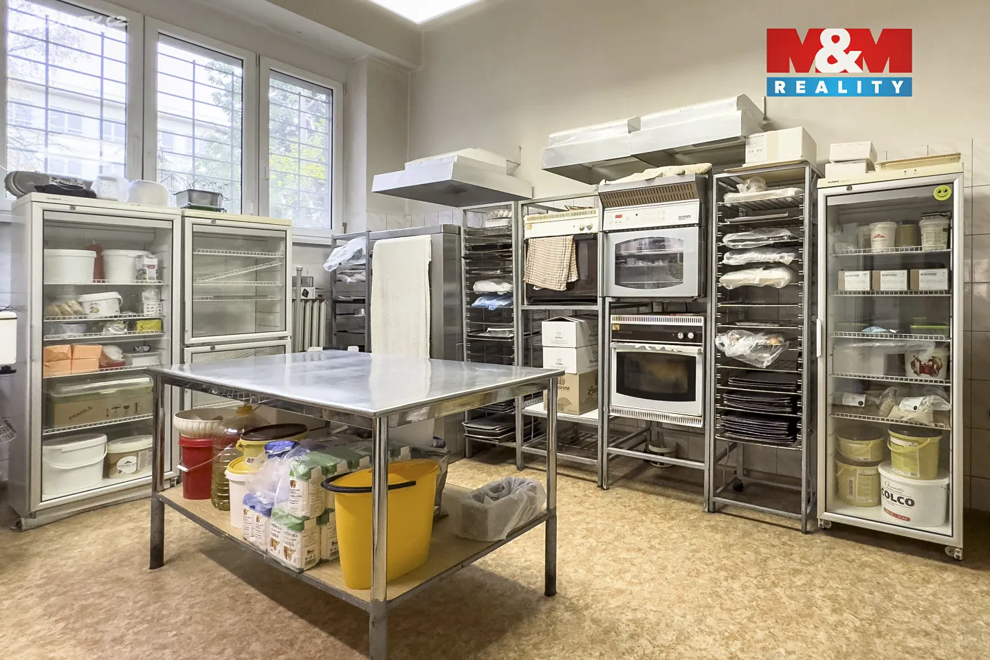Dispozičně se zde nachází hlavní prodejní část s prodejním pultem (50 m2) s přímým vstupem z ulice a velkými výlohami, dále několik místností vhodných pro zázemí, skladování či výrobu, přípravna s chladicími boxy a sociální zařízení pro personál i klienty.