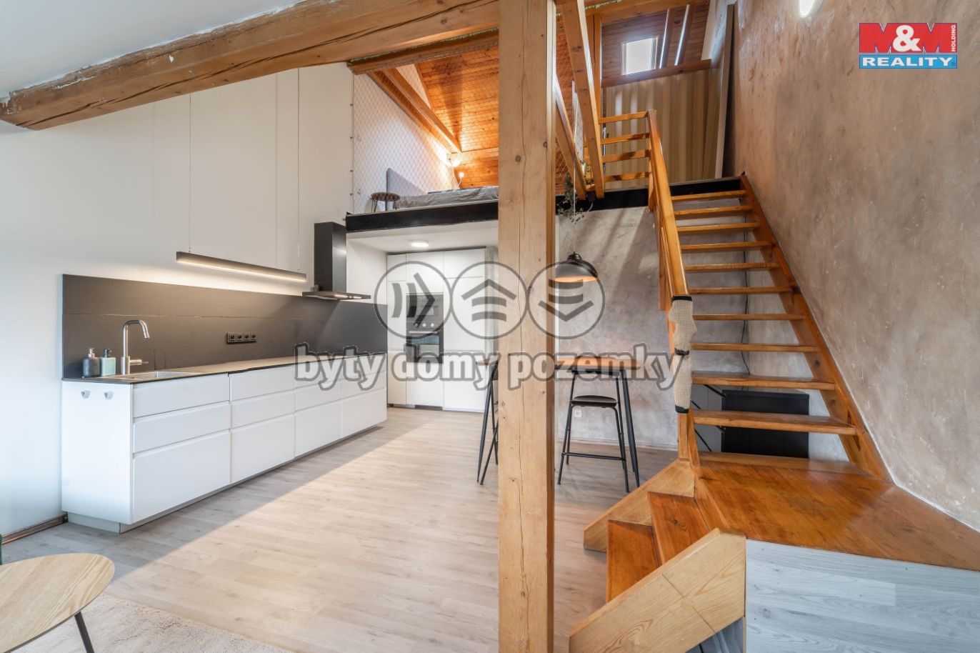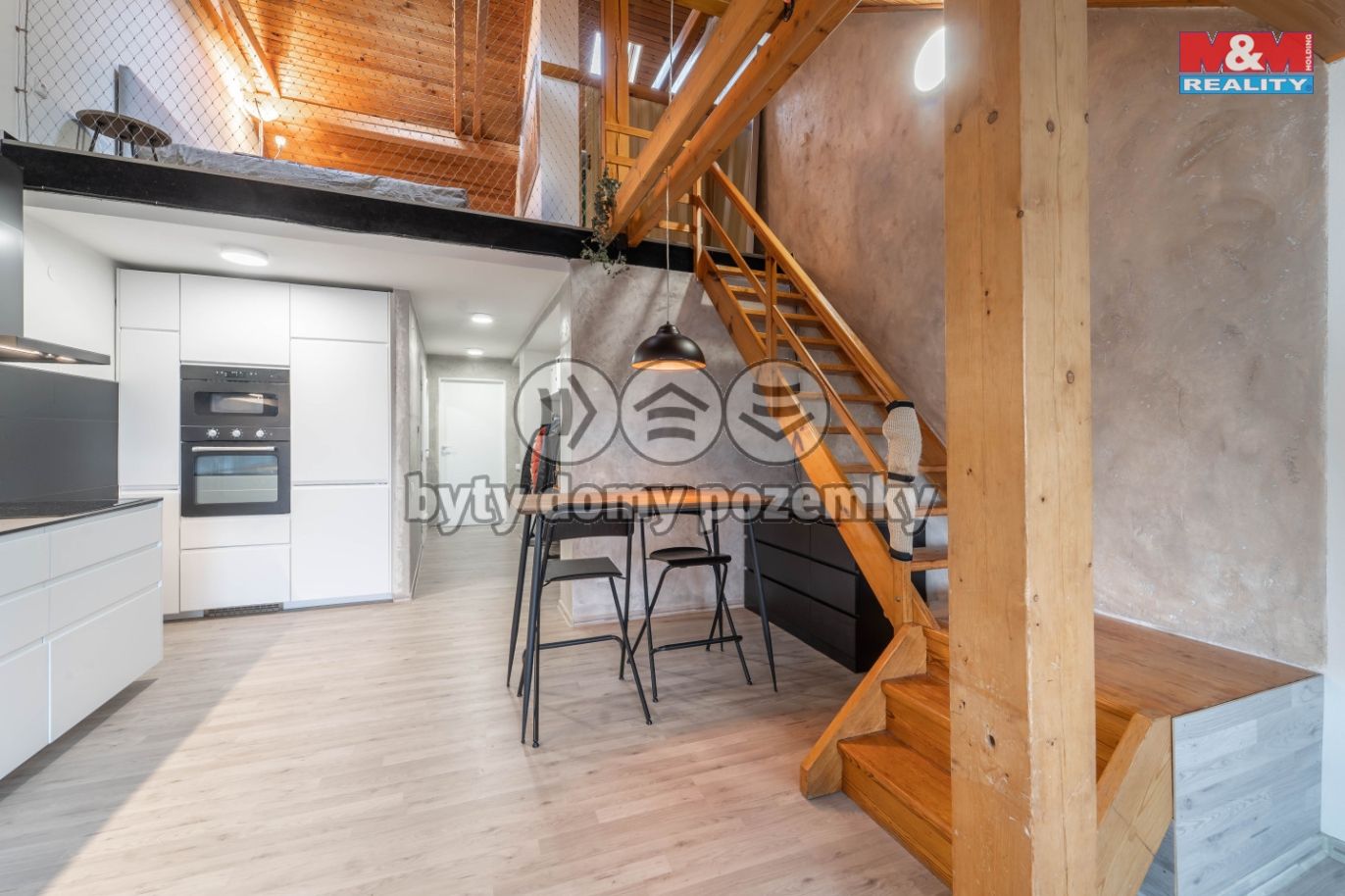 bytu 2+kk v podkroví s obytnou galerií, kde je ložnice a šatna o výměře 58 m².