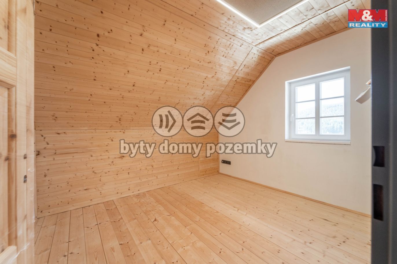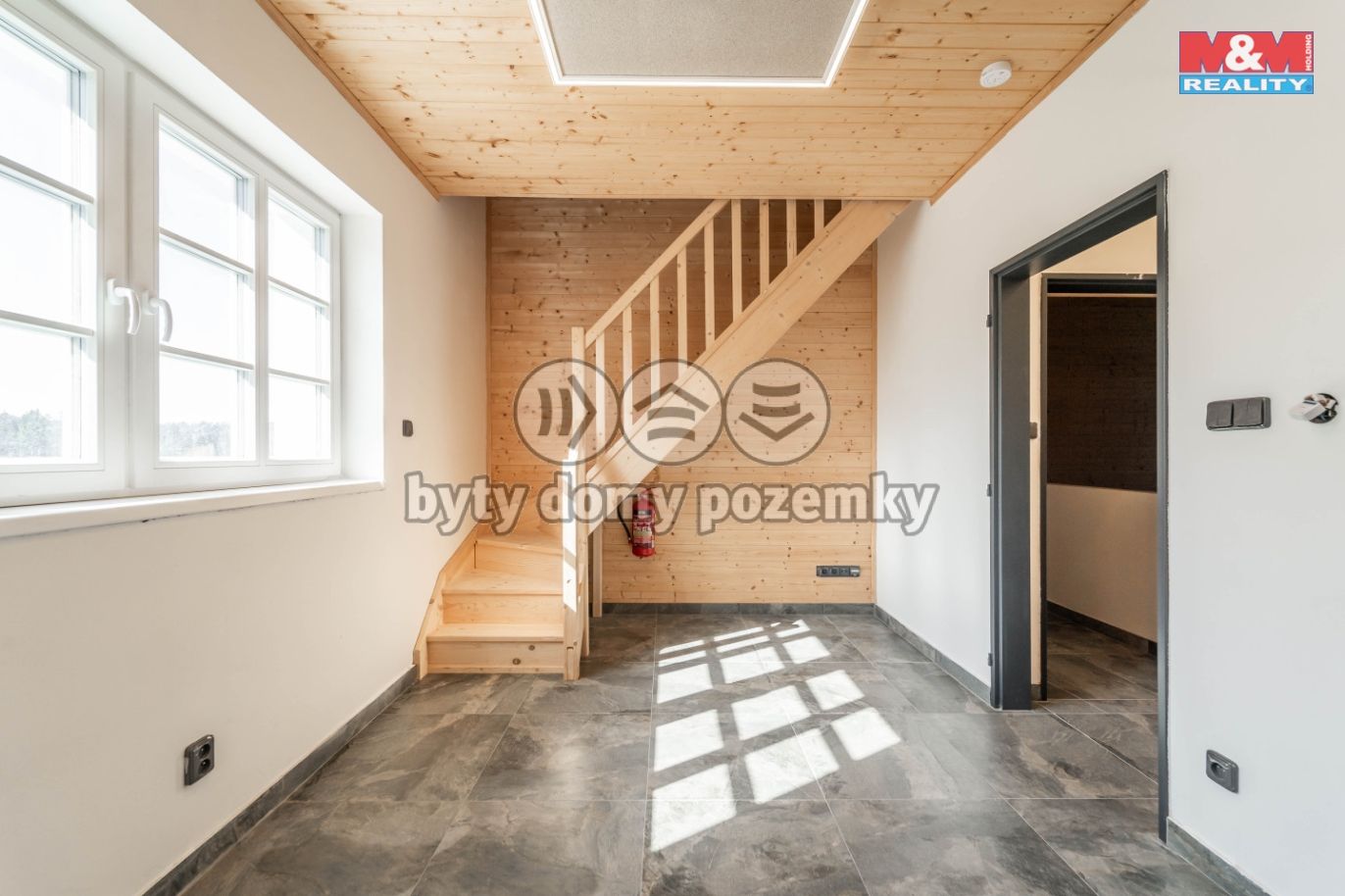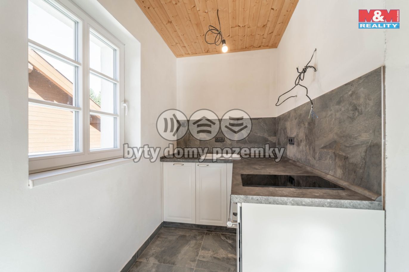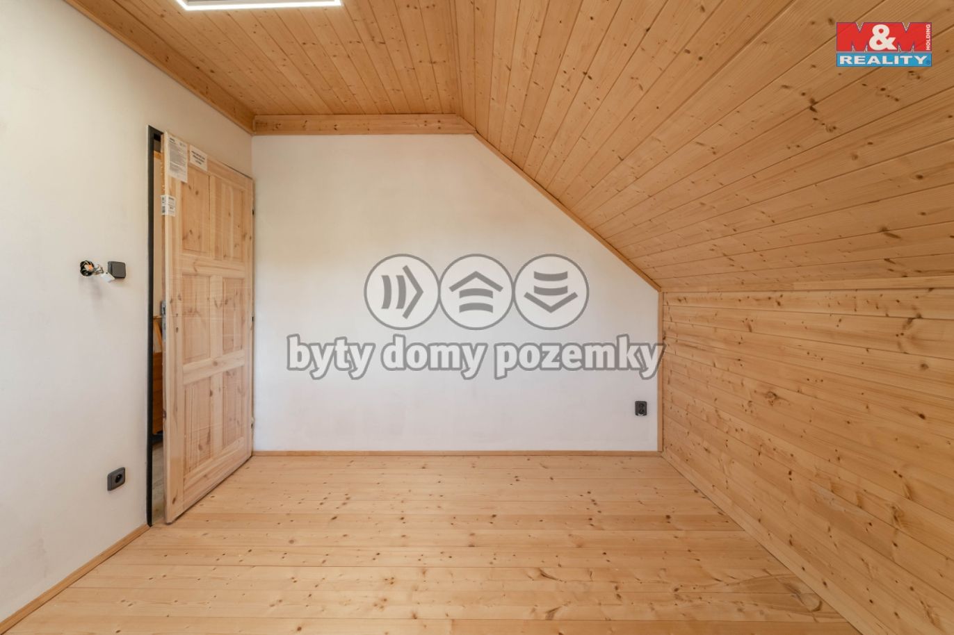 Moderní stavba z roku 2023 kombinuje kvalitní materiály a útulný design – dřevěná okna s trojskly, podlahy a obložení stěn ze dřeva, důkladné zateplení i elegantní detaily.