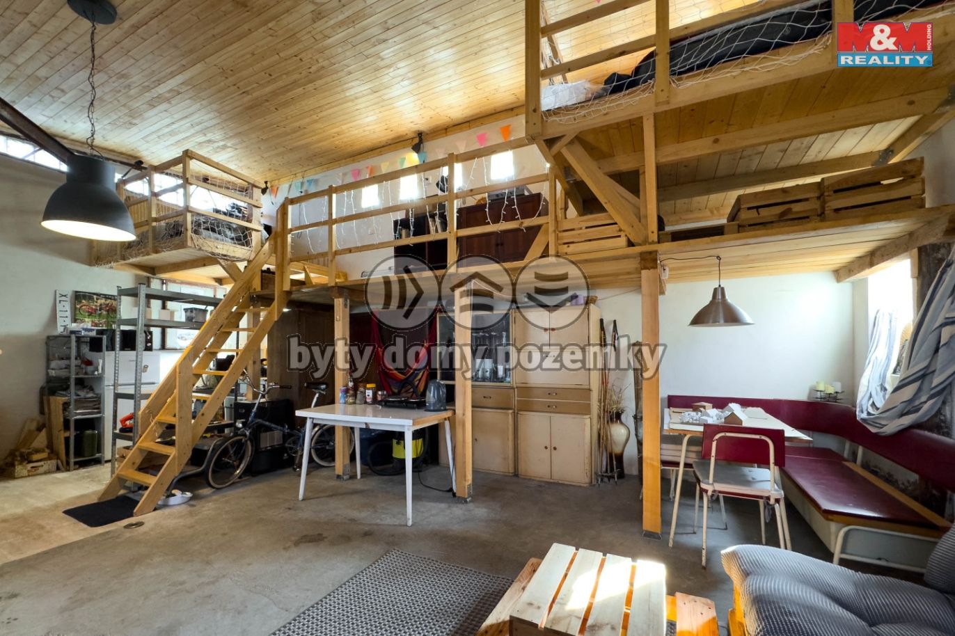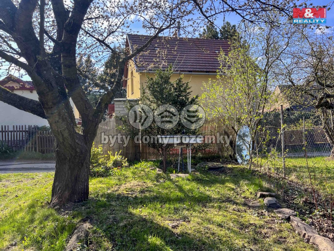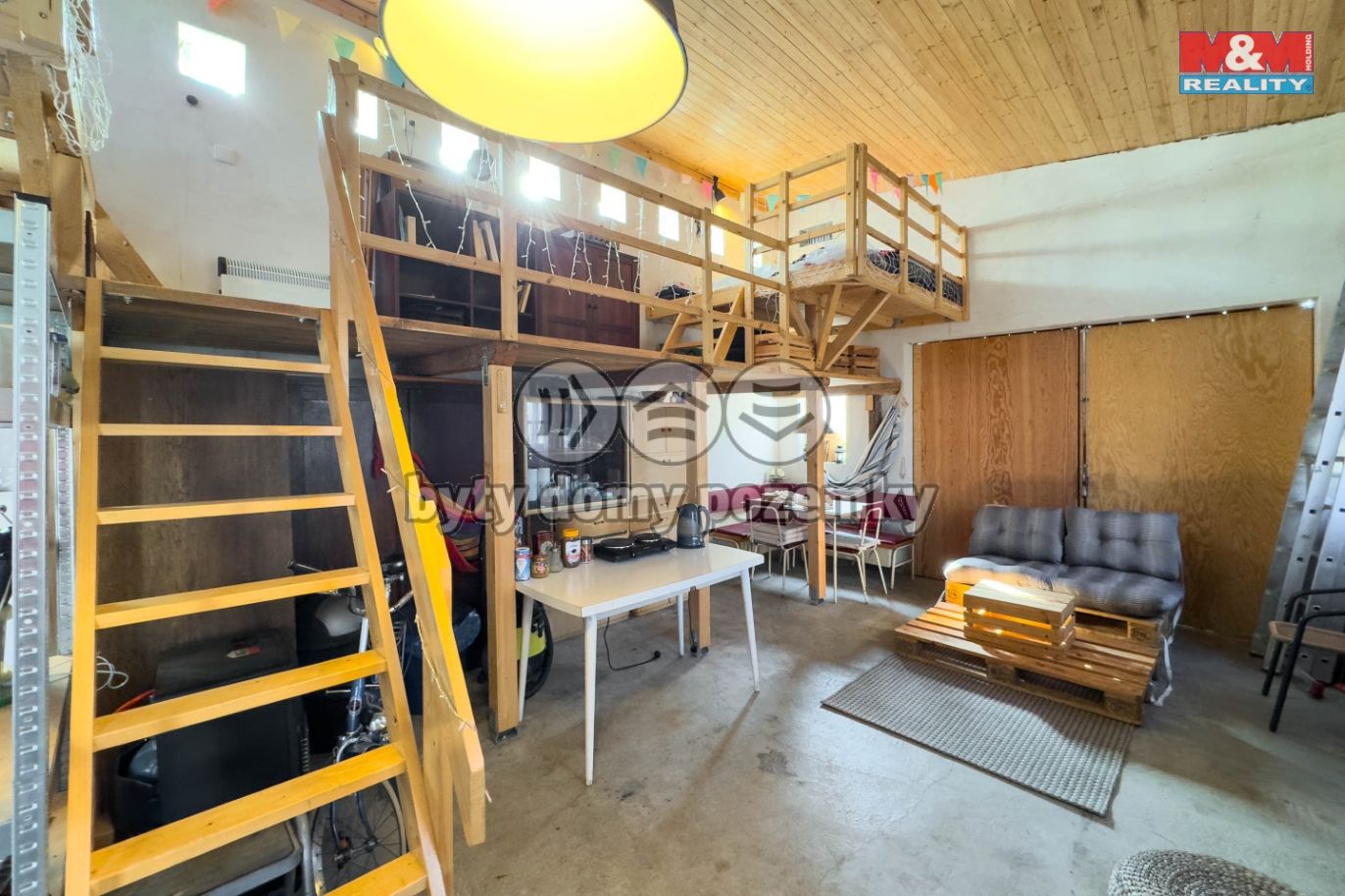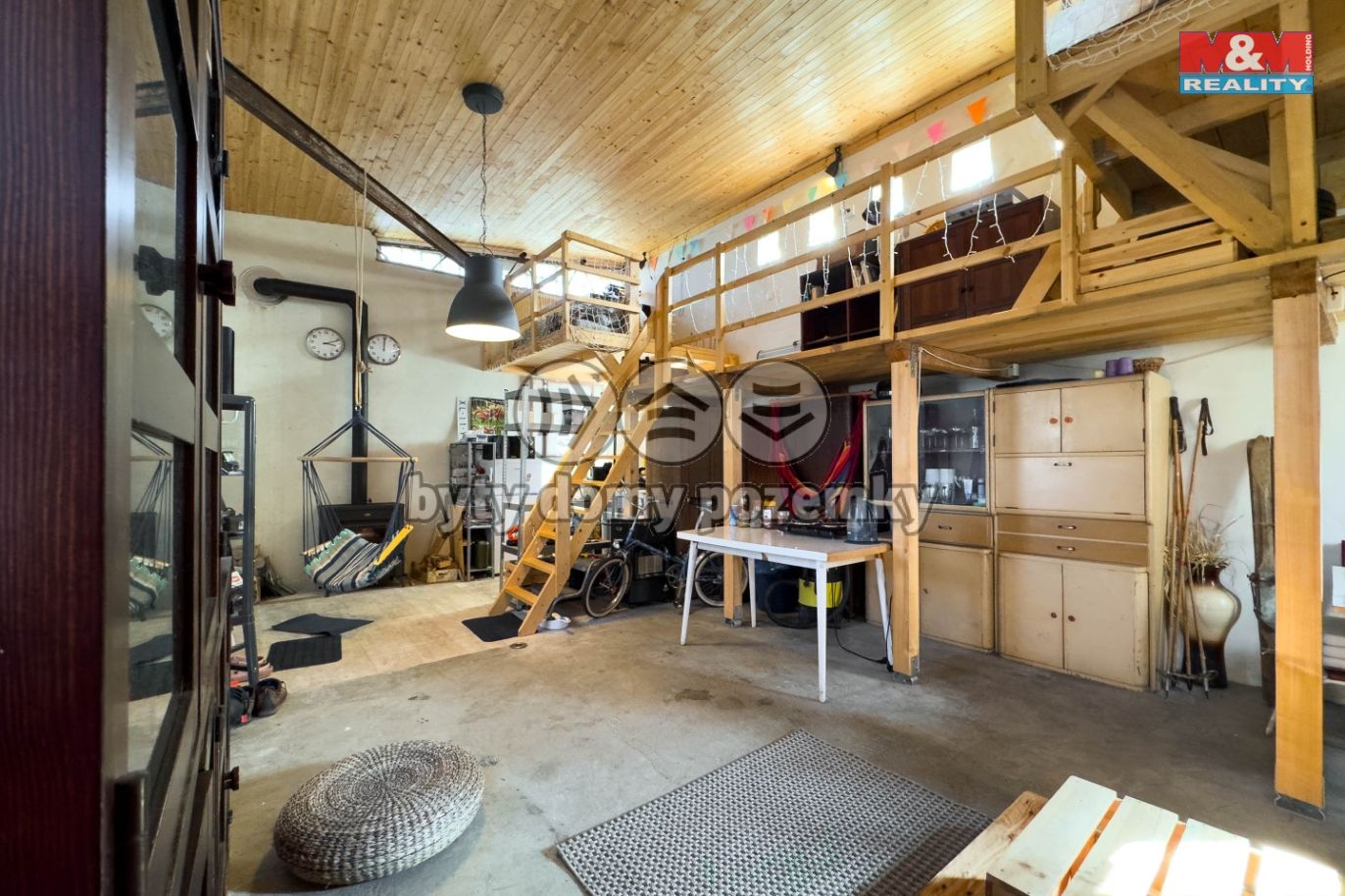 Součástí pozemku je zděná stavba o velikosti 42 m², která slouží jako víkendový domek s dřevěným patrem. Má zavedenou vodu a vytápění kamny, takže může posloužit jako dočasné bydlení během stavby nebo jako rekreační objekt.