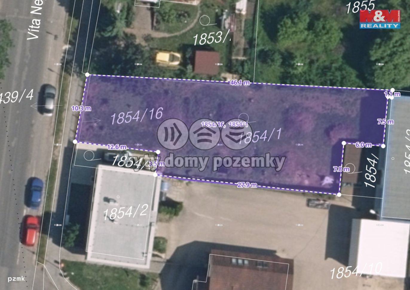 Jedná se o dva přímo navazující pozemky o výměře 611 m² a 5 m² s přístupem z ulice Víta Nejedlého, která je jednou z hlavních tepen města.