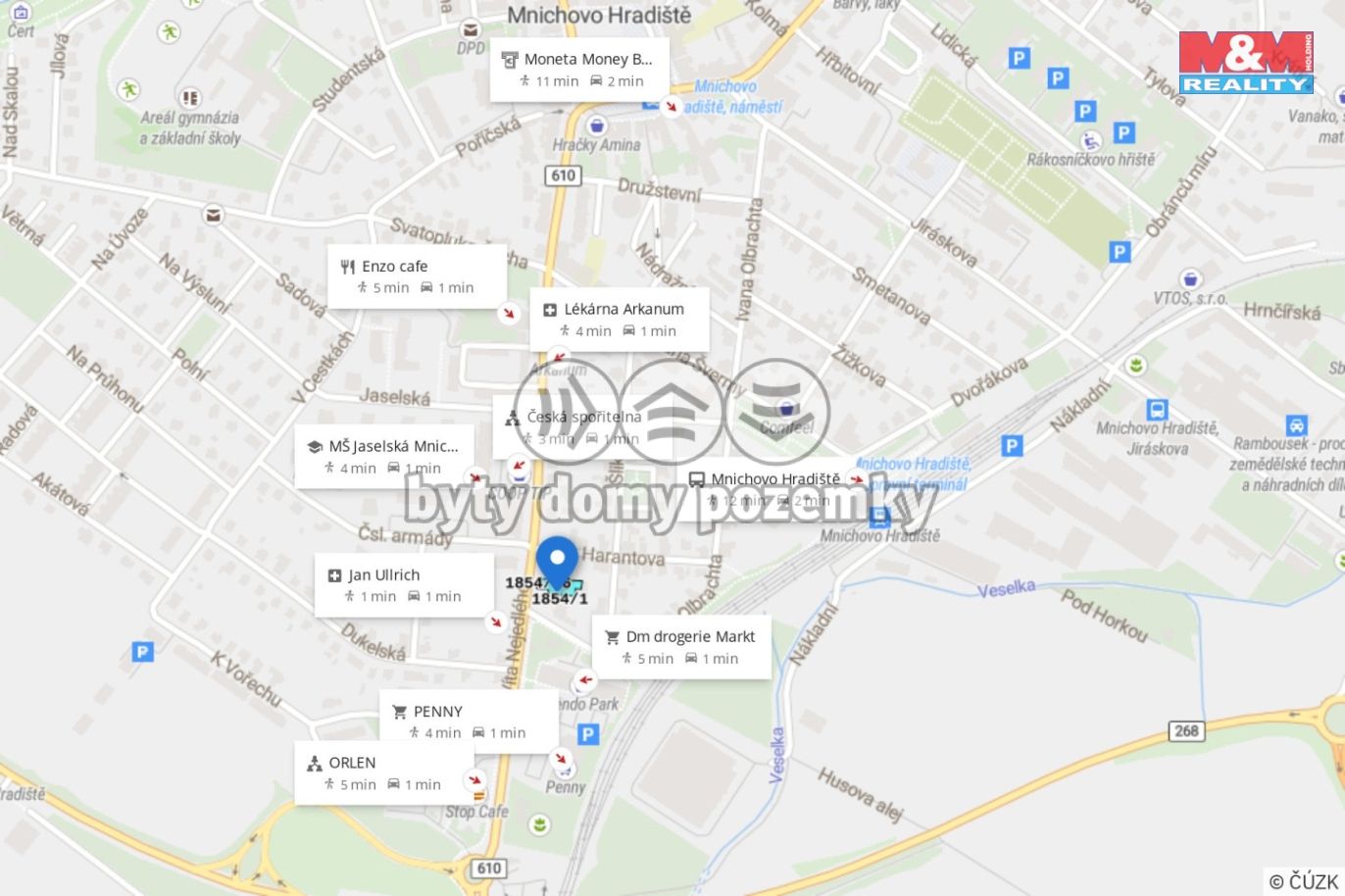 pozemky o celkové rozloze 616 m², které se nacházejí v samém srdci Mnichova Hradiště – jen pár minut chůze od náměstí.